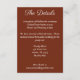This must-have details card features the title in a lively script and your details in a modern serif font. This is the perfect place to note accommodations and other pertinent wedding information. The back features your wedding date.