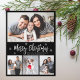 Minimalist Script Black 4 Photo Collage Christmas Postcard