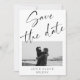 Announce your special day in modern simplicity with our Black and White Script Save the Date. This minimalist design features a classic script font that beautifully frames a cherished photo of the happy couple. The timeless monochrome palette adds a touch of sophistication to your wedding announcement. Customize the date and details to create a save the date that effortlessly captures your love story.