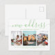 A minimalist and elegant photo new address moving announcement postcard in pastel green calligraphy and sans serif fonts. Personalize it with your own details.
