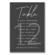 Minimalist Script Dark Gray Wedding Seating Chart Table Number