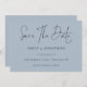 Minimalist Script Dusty Blue Save The Date. Simple elegance with Save The Date in a modern set script.The rest of the text you can easily personalise.Shown here in black on Dusty blue however the text and background colors can be changed if you wish via the customise further option.