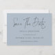Minimalist Script Dusty Blue Wedding. Simple elegance with Save The Date in a modern set script. The rest of the text you can easily personalise.Shown here in black on Dusty blue however the text and background colors can be changed if you wish via the customise further option.