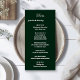 Minimalist script emerald green wedding reception Menu, It includes everything you'll need for your reception, including your first course, second course, entree, and dessert. You can customize it by including your favorite items.