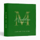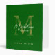 Minimalist Script Green Metallic Gold Monogram 3 Ring Binder