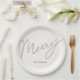 Minimalist Script Merry Cream White Paper Plates