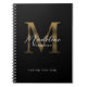Minimalist Script Metallic Black Gold Monogram notebook