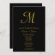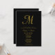 Minimalist Script Monogram Black Gold Wedding Invitation