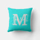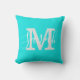 Minimalist Script Monogram Name Bright Teal Throw Pillow