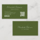 Minimalist Script Moss Green Qr Code Professional Business Card