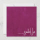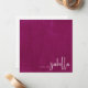 This chic note card features your name in a handwritten script calligraphy "a note from" on a distressed dark raspberry background. The typography is stylishly placed in the lower right corner. The back of the note card is white.