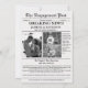 Minimalist calligraphy newspaper wedding save the date with three photos, one of the groom and bride as children and one of them as adults.