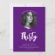 Minimalist Script Photo 30th Birthday Purple Invitation