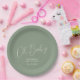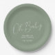 Minimalist Script Sage Green Oh Baby Shower date Paper Plates