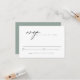 This wedding RSVP card features an elegant calligraphy script font and modern minimalist design with an optional sage green colored postcard backside for easy mailing. Easily edit wording for your event. This RSVP is perfect for your simple classic event. Easily change the color on the backside to match any color scheme and add a return address for easy mailing without the additional envelope.