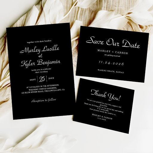 Announce your special day with understated elegance using our Minimalist Script Simple Black Wedding Save the Date Card! Featuring timeless White script calligraphy on a sleek black background, this design prioritizes clarity and sophistication. Perfect for modern couples, it’s fully customizable with your names, wedding date, and a place. This minimalist template blends effortless personalization with a clean aesthetic. Ideal for weddings seeking simplicity, it ensures your guests save the date in style—without overwhelming details.