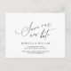 This is the modern minimalist clean script, design themed, in Black font, Wedding party invitation Rescheduled (postponed / postponement) postcard (save the new date) . It is the perfect and elegant way to make the reschedule announcement to your friends and family.