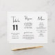 Turn this paper sheet into a modern wedding tri-fold menu, table number and program with information about the timeline, things that are good to know, food and bar menu. Simply fold, tape the seam on the back and use this modern wedding stationery program for your wedding reception.