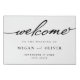 Create your own personalized wedding welcome sign with elegant calligraphy script typography and modern minimal black and white design.