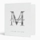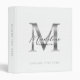 Minimalist Script White Metallic Silver Monogram 3 Ring Binder
