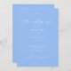 Having your Minimalist Scripted Peri Blue Wedding Invitation match the theme of your party is a great detail that your guests will appreciate. The thoughtfulness of a consistent party theme is often appreciated and can show your guests that you can host a cohesive event.