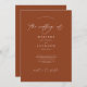 Having your Minimalist Scripted Terracotta Wedding Invitation match the theme of your party is a great detail that your guests will appreciate. The thoughtfulness of a consistent party theme is often appreciated and can show your guests that you can host a cohesive event.