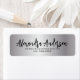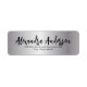 Trendy personalized return address label design featuring a faux silver background with your name written in a modern script. The text is fully customizable.