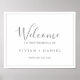 This minimalist silver wedding welcome poster is perfect for a simple wedding. The modern romantic design features classic silver gray and white typography paired with a rustic yet elegant calligraphy with vintage hand lettered style. Customizable in any color. Keep the design simple and elegant, as is, or personalize it by adding your own graphics and artwork. Customize the poster with the name of the bride and groom, and the date of the wedding.