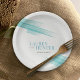 Minimalist simple aqua blue green color ink strokes wedding paper plates. Other matching items and color options are available. © Original ink brushstroke art and design by Sarah Trett for www.mylittleedenweddings.com on Zazzle.