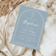 Having your Minimalist Simple Arch Blue Baptism Invitation match the theme of your party is a great detail that your guests will appreciate. The thoughtfulness of a consistent party theme is often appreciated and can show your guests that you can host a cohesive event.