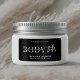 Elevate your packaging design with this minimalist black body butter product label design, featuring trendy script fonts and modern layout. This fully editable cosmetic jar label is great for any type of beauty or bath product. Whether it's a body scrub, body butter or whipped soap, this cosmetics label (2.375" L x 1.25" H) can suit most cosmo jars, but please verify your packaging size to ensure a good fit. You can edit all text and colors to create custom labels for your brand.