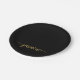 Girly Minimalist Simple Clean Black And Gold Monogram Name Signature Script Custom Personalized Paper Plates. This design featuring your first name in a pretty hand lettered style swash tail font signature typography (or calligraphy) on black and gold background. These are easy to customize it. Great for housewarming, also for birthday, wedding, sweet 16 birthday party, bridal shower, bachelorette party, for graduation party, baby shower and It’s for the girl who loves unique minimalist things.