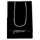 Minimalist Simple Black Monogram Girly Script Medium Gift Bag