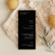 This sleek, black design brings a dash of sophistication and allure to any dining event. Its versatile style effortlessly complements a variety of table settings, while the crisp white font ensures legibility and adds a modern contrast. Ideal for those seeking to make a bold yet refined statement.