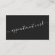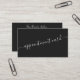 This girly and glamorous customer appointment business card is perfect for a stylish and trendy professional businesswoman. It depicts a bold modern font paired with a chic handwritten cursive white typography on top of a simple black background. On the back, it includes contact information that can be changed completely or personalized to your details. It's professional, elegant, and stylish; the perfect way to advertise your business and stylize your marketing and advertisement material for your customers.