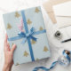 Minimalist simple dusty blue gold Christmas trees Wrapping Paper