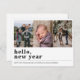 Minimalist Simple Hello Happy New Year 3 Photo Holiday Card