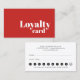 Simple and modern customizable loyalty card template for beauty or health salon. Elegant design with red background and white bold fonts. Perfect marketing tool to reward your best customers.