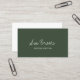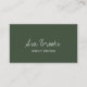 Elegant and timeless, this modern business card in rich dark green and white is a sophisticated design that combines your name in simple hand lettered script along minimalist typography. Contact info as well as photo, logo or QR code setup available on front and/or back.