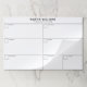 Use this tear off desk pad as easy way to keep track of what's ahead for the week. The simple, modern layout in minimal black and white with sans serif fonts will appeal to even the most austere organizer. Personalize the name text with a family name and update with all the family appointments, sports practices, and social obligations or buy one for each member of the family to stay organized. Ideal for busy adults, students, moms, dad, kids, and even office environments.