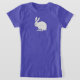 This tee shirt has a minimalist type artwork of a sitting white bunny rabbit from a side profile outlined in black.
