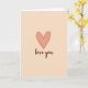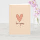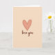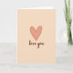 This card shows a simple heart near the top center, drawn in a warm salmon pink with a slightly uneven brown outline that makes it feel human and real. Under the heart, the words “love you” sit in the middle in smooth, flowing cursive-style lettering in deep brown. The background is a soft peachy beige, with no extra objects or scenery, so your eyes go straight to the heart and the message. The heart’s outline wobbles just a bit, like it was drawn by hand, and that small imperfection adds warmth. The brown text stands out clearly against the light background, but it still matches the cozy color palette. It feels like a quiet note you’d leave for someone you care about, whether that’s a partner or a close friend. Giving this card says “I mean it” without needing a lot of words 🥰❤️. Hope it helps you share your Valentine’s Day sentiments with someone special.