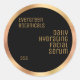 a simple minimalist beauty label with a black background and blush gold border