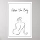 Embrace tranquility and self-care with this beautifully minimalist line art illustration. Featuring a serene woman from behind, her silhouette exudes grace and a sense of calm relaxation. This elegant design is perfect for creating a peaceful oasis in your home, especially in bathrooms, spas, or bedrooms. The simple yet powerful imagery promotes a feeling of renewal and body positivity. Printed on high-quality materials, it's a stunning piece of art that effortlessly blends into modern and contemporary decor styles. It's an ideal choice for those seeking to add an artistic and meaningful touch to their space. Whether you're looking for a personal treat or a thoughtful gift, this unique design is sure to inspire relaxation and well-being. Transform your walls into a sanctuary of peace and rejuvenation. Order yours today and let the serenity wash over you.