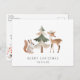 Minimalist Squirrel Deer Pine Tree Merry Christmas Holiday Postcard