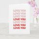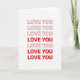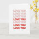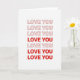This card features the words “LOVE YOU” repeated in a tall stack down the center on a plain white background. The letters are in a simple sans‑serif style, all in red, and each line sits neatly under the one above it. The first three “LOVE YOU” lines are red outlines, which feels like a softer, quieter way of saying it. Then the fourth line switches to solid red, like the feeling suddenly gets stronger and harder to hold back. After that, one outlined line appears again, followed by the last two lines in solid red, giving the message a steady, heartfelt finish ❤️. With nothing else on the front, the repeating words do all the talking and make the message feel honest and direct 🥰. It’s a meaningful card to give because it says “love you” more than once, the way we often feel it in our hearts, and it helps you share Valentine’s Day sentiments with someone you care about.