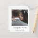 This simple and elegant black and white wedding budget save the date card features your personal photo on the front, with a mix of modern handwritten script and bold serif text. There is room for additional information on the back, including your wedding website.