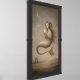 A modern minimalist surreal painting inspired by Leonora Carrington, featuring a single mythological hybrid creature floating in a vast, tranquil space. Rendered in muted earth tones with soft organic textures, this elegant fine art piece blends subtle occult symbolism with contemplative surrealism. Perfect for collectors of mystical art, surreal decor, and gallery-quality statement prints for modern interiors.