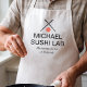 Minimalist Sushi Lab with Chopsticks and Salmon Apron
