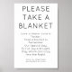 Minimalist Please Take a Blanket Wedding Sign Printable or printed. A simple clean full customiseable text design with modern text which you can easily personalise and change color via the edit further option if you so wish. Available printed or as a printable digital download.